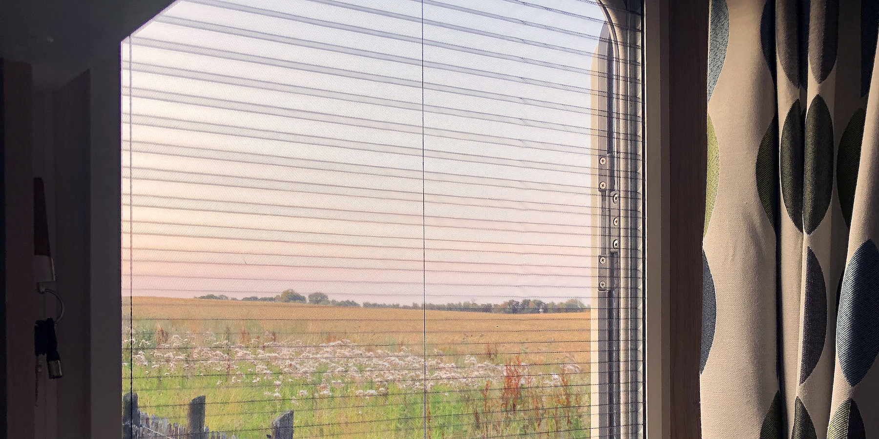 Elle est parfaite pour nous ! Il y a des toilettes, une douche, une cuisine, un chauffage, un coin salon, un lit, des moustiquaires, tout le nécessaire. Et surtout, il y a de la place pour notre chien Hermann. Nous avons retiré le lit du bas et voilà, Hermann a son coin.